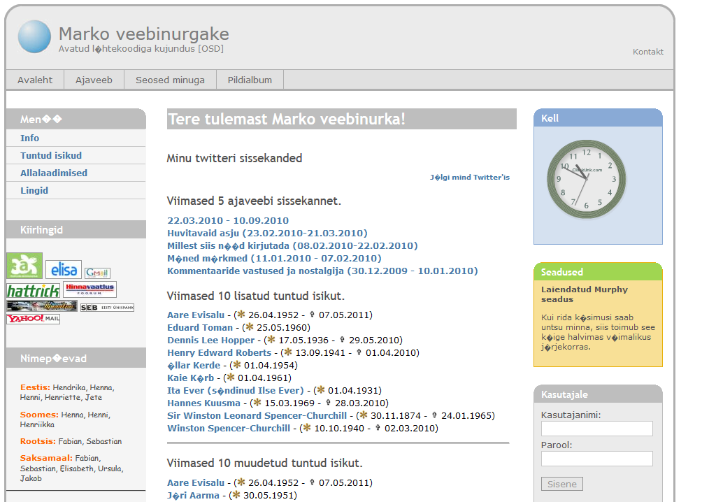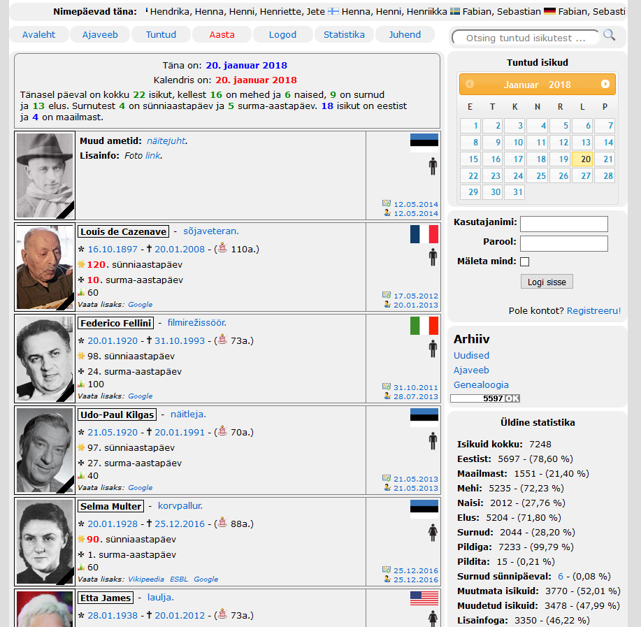 Muidugi on võimalik postitusi jagada ka Facebooki. Hetkel, seda postitust kirjutades on leht veel testaadressil. Lisaks olen ma uuendanud viimasel ajal ainult uue lehe tuntuid isikuid. Seega kui asi lõpuks õigesse kohta jõuab tuleb mõned lingid parandada ja statisika osa on ka tiba muutunud.