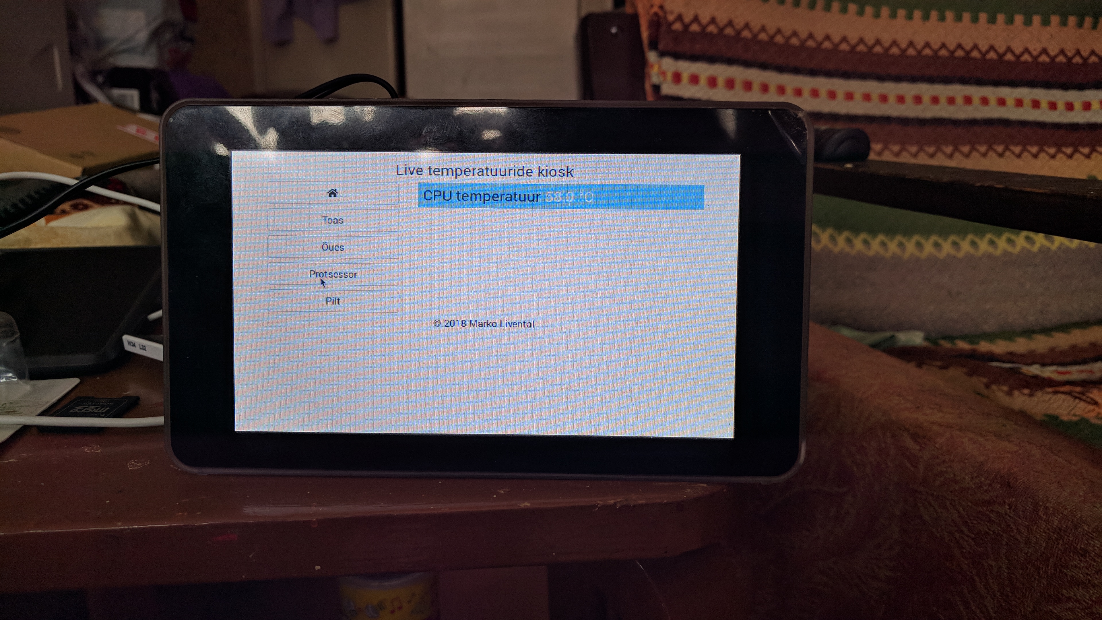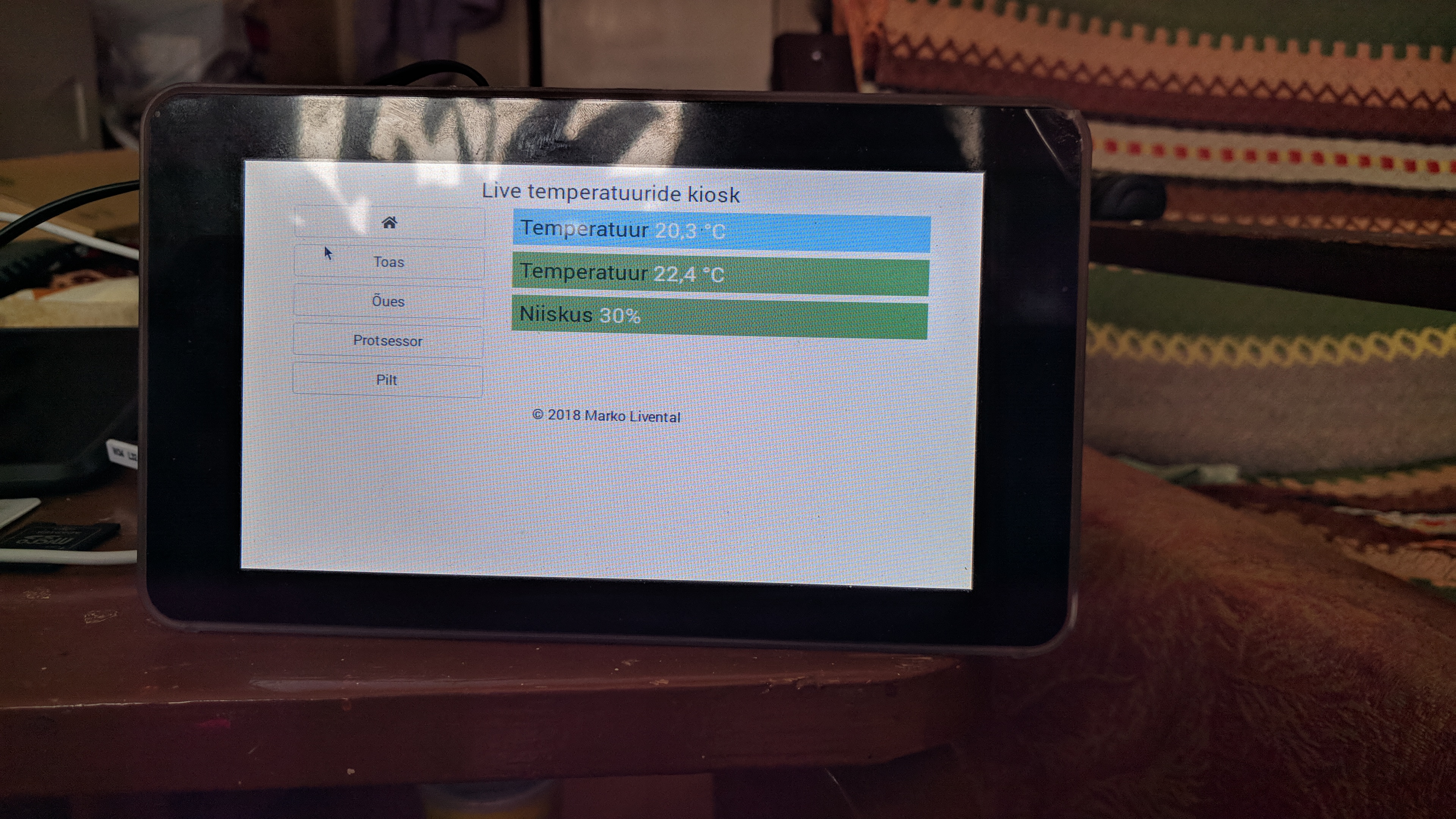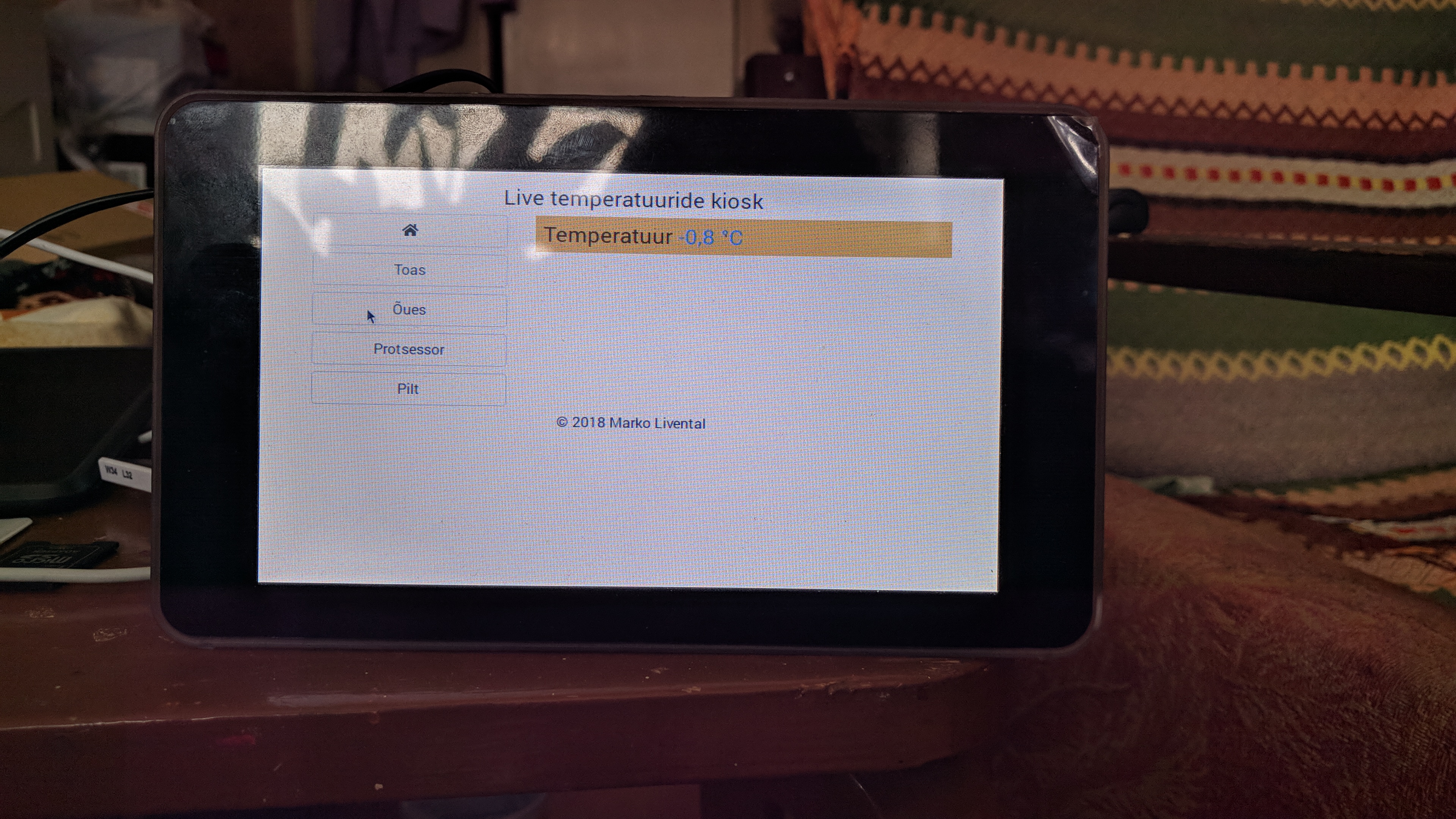Juba pikemat aega olen mõelnud, et peaks Raspberry Pi' panema Kioski variandis tööle. Midagi sellist nagu Kehtnas Tehnikamajas õpilastele mõeldud tunniplaan. Kõik on ilus ja kena, kuid selleks on vaja midagi ka näidata. Otsustasin näidata hetkel mõõdetud andmeid, mida saan vaadata ka Arduino LCD 16x2 + Keypad vahendusel. Algversioon on loetav ja vaadatav siit. Tänaseks päevaks on 4 nuppu kus iga vajutuse peale mõõdetakse vastav info. Seega kasutame sama varianti ainult, et veebis vaatamiseks.